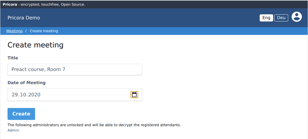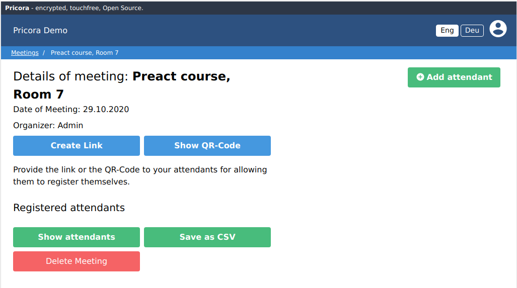 Afterwards you can start creating meetings for which you want to collect contact information.