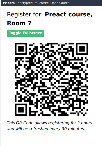 While you can send a registration link to your guest by clicking “Create Link” and send it to your guest by mail or messenger, the probably most useful button is labelled “Show QR-Code“.